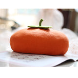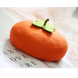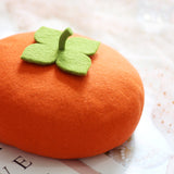 枝に小さな夕陽を宿した季節の実り。柿をモチーフにした羊毛フェルトのベレー帽。ウール特有のふくらみと柔らかさのある素材感が特徴的。黄緑色のヘタが忠実に再現されています。自由な角度で左右に傾けて、お好みのスタイルでお楽しみください。