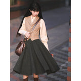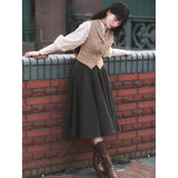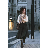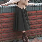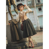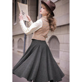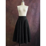 知的でありながら温もりを感じさせる、物語を纏うようなクラシックウールスカート。深みのあるチャコールブラックのツイード生地には、微細なカラーネップが散りばめられ、まるで夜空に瞬く星々のように上品な煌めきを放っています。ウエストラインはすっきりと整えられ、裾にかけてふんわりと広がるシルエットが、歩くたびに優雅な余韻を描きます。古いヨーロッパの街角を思わせるノスタルジックな佇まいに。