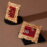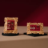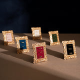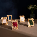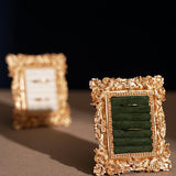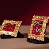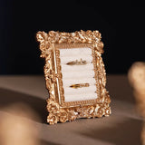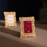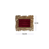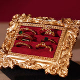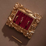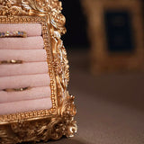 ゴージャスな装飾が施された金色の額縁のアクセサリーディスプレイ。ベルベット調のクッション生地にリングやピアスをできるようになっています。バロック調の雰囲気があり、ジュエリーを美しく収納しつつ、まるで美術品のようにディスプレイできます。