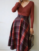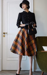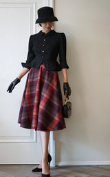 古き良き明治モダンの薫りが漂う格子縞スカート。歩くたびに、ふわっと広がる夢のようなシルエット。動きに合わせてふんわりと揺らめく美しいシルエットは、美しき淑女を演出してくれる。