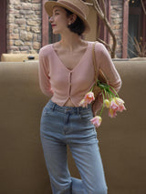 ショート丈でスリムなシルエットが特徴的なフレンチレトロなカーディガン。やわらかな生地感となっており、夏でもお召しいただくことができます。軽く羽織って、優雅な貴婦人に。お好きなカラーをお選びください。