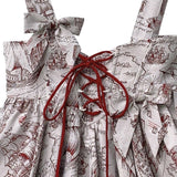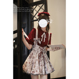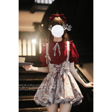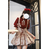 帆船と羅針盤の線画ストラップバルーンスカートとブラウス - Wine Red