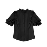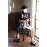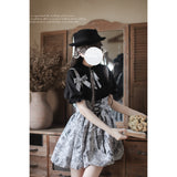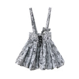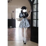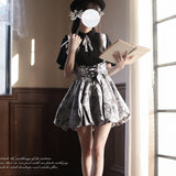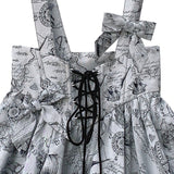 帆船と羅針盤の線画ストラップバルーンスカートとブラウス - Black