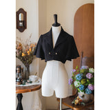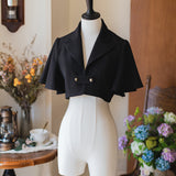 エレガントな英国のお嬢様みたいに演出してくれるショート丈のボレロジャケット。フロントにはボタンがアクセントとして付いており、ウエスト部分がすっきりとしたデザイン。袖はフレアスリーブで、動きを出しながらもエレガントな印象を与えます。時代を超えて輝く永遠のスタイル。洗練された気品を纏ったお嬢様に。
