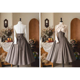 エレガントな英国のお嬢様みたいに演出してくれるショートジャケットとコルセットスカート。細かいストライプ柄が施されたクラシカルで落ち着いた雰囲気のアイテム。ジャケットは、ウエストラインが強調されたショート丈のデザイン。肩部分が開いたフレアスリーブが特徴的。スカートはハイウエストなシルエットが特徴的で、フロントにはアンティーク調のボタンが並び、刺繍やレースの装飾が施されており、細部まで美しいデザインとなっています。時代を超えて輝く永遠のスタイル。洗練された気品を纏ったお嬢様に。