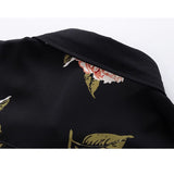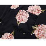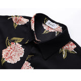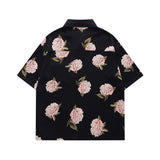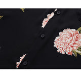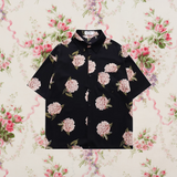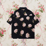 漆黒のビロードに包まれて咲き誇る禁断の美の化身。暗夜に咲いた牡丹の花を鮮やかな色彩で描いたシャツ。天使の花園への反逆として咲く背徳の美学。デニムなどカジュアルなボトムスと合わせてみて。