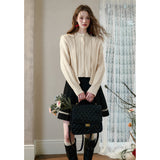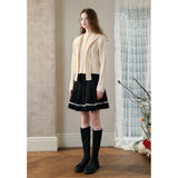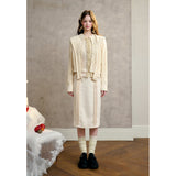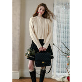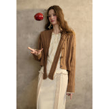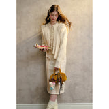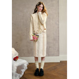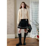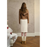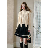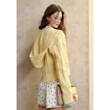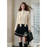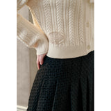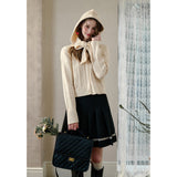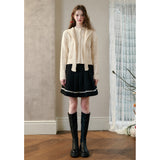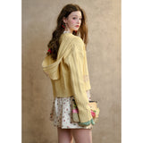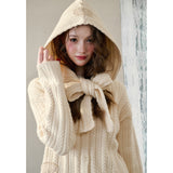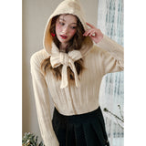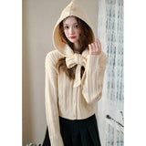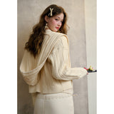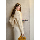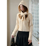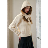 ケーブルの編み模様が全体に施されたニットカーディガン。程よくフィットする丈感で、スカートやパンツとのバランスがとりやすいショート丈のデザイン。同色のニットフードを合わせると、キュートな雰囲気が加速する。シンプルでありながらディテールにこだわったアイテム。