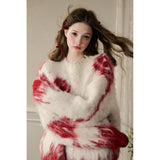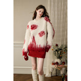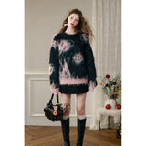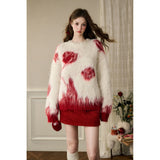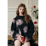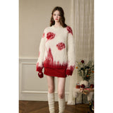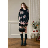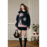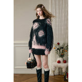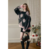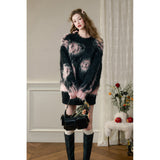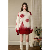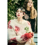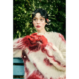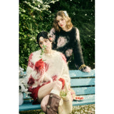 濃厚な色香と妖艶な姿の薔薇の花を描いたオーバーサイズのニットセーター。柔らかくふわふわした質感が特徴的。全体に大柄の花模様がアクセントとしてあしらわれています。カジュアルでありながらも、女性らしい華やかさを引き立てるデザイン。永遠の愛を抱きしめて。