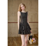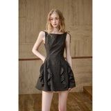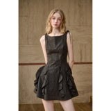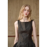 クラシックなフレンチムードを纏ったチェック柄ワンピース。落ち着きのある細かなチェックパターンが施されており、知的かつヴィンテージライクな雰囲気。肩部分のリボンが甘さを添え、腰から裾にかけて縦にあしらわれたフリルが印象的。気取らないエレガンスを醸し出してみて。