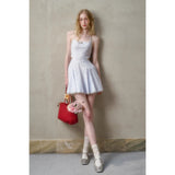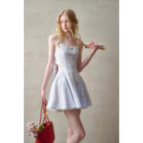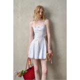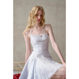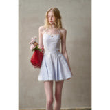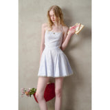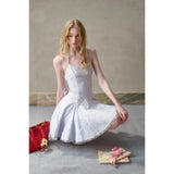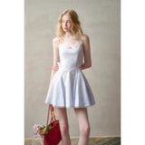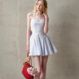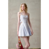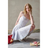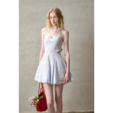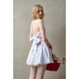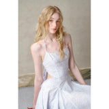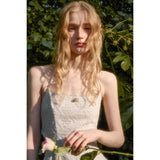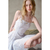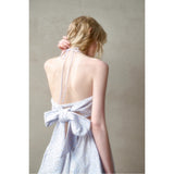 やわらかな陽光に映える、澄んだ水のような淡いブルー。繊細な刺繍レースが施されたキャミソールワンピース。肩まわりとバックを大胆に美しく見せたデザイン。ウエスト部分のカットアウトと、後ろで結ぶ大きなリボンがフェミニンでロマンティックな印象を演出します。何気ない日常に特別感を与えてくれる。