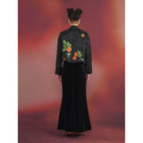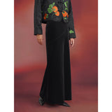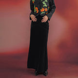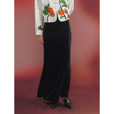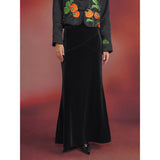 女性らしい美しい曲線美を魅せてくれるロング丈のマーメイドスカート。艶やかなテクスチャのベルベット生地で、優雅なドレープ感に魅了される。神秘と魅惑のオーラを放つエレガントなアイテム。