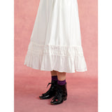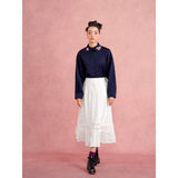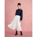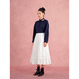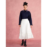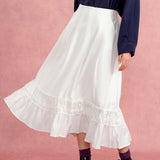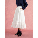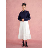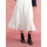 清楚で上品な印象の白木蘭の花を想起させるフレアスカート。白糸の絆に込められた透明な想い。空白のキャンバスに秘められた可能性。雪のように澄んだ無垢なカラー。ゆったりとしたシルエットのアイテム。