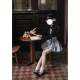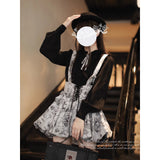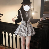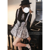 帆船や鋲、羅針盤の線画が描かれたストラップバルーンスカートとブラウス。ブラウスのフリルやリボンのディテールが上品さを演出し、花の蕾のような丸みを帯びたスカートがキュートな愛らしさを振り撒いています。洗練された美学を象徴する構築的なシルエットを堪能してみて。