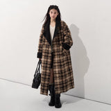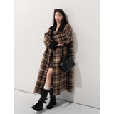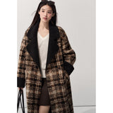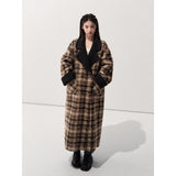 ブラウンを基調としたチェック柄と、深みのある黒。表裏を返すたびに印象を静かに切り替えるリバーシブルのロングコート。片面では深い黒が凛とした佇まいと都会的な静けさを描き、もう片面では柔らかなチェックがどこか懐かしく穏やかな温もりを漂わせます。どちらの面でもゆったりとしたシルエットが身体を包み込んでくれる。