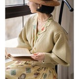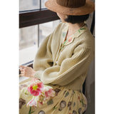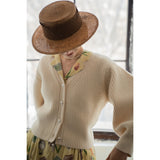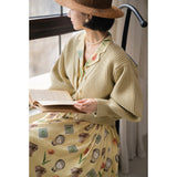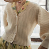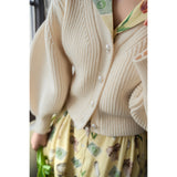 膨らみのある袖のシルエットが特徴的なニットカーディガン。比較的厚手の生地感となっており、秋から春先までお召しいただけます。ボタンは凸凹としたバロックパールとなっており、美しい輝きを解き放っています。