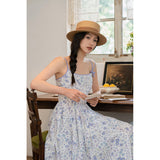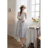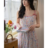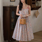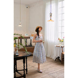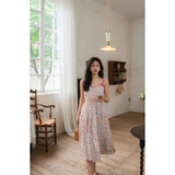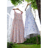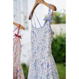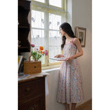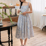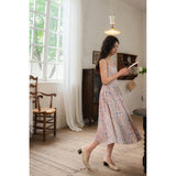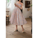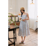 1950年代を彷彿とさせるレトロな雰囲気たっぷりのストラップワンピース。可憐に咲いた花々を水彩で描いたアイテム。フランスの美しい庭園に迷い込んだみたい。ふわりと優雅に膨らむシルエットに魅了される。