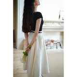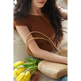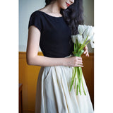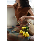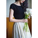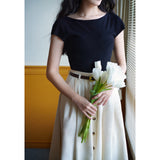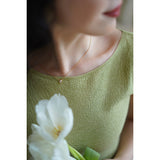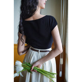 やわらかな生地で紡がれたニットトップス。丸みのある線形のネックラインが優雅な雰囲気を与えてくれる。タイトすぎず、ゆったりとしすぎない、ちょうど良いシルエット。これからの季節のワードローブに欠かせないアイテム。