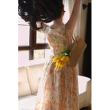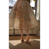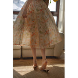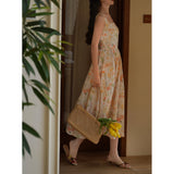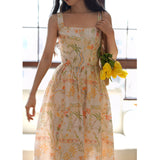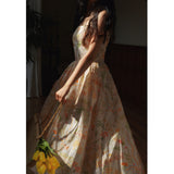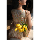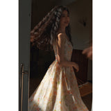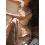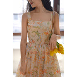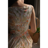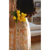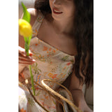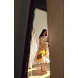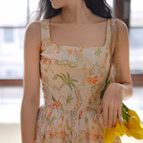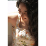 明るい光と、陽の恵みに満ちた南国の楽園世界を描いたストラップワンピース。トロピカルな色彩に満ちた、極彩色のサンセットビーチへと続く小径には、色鮮やかな植物が、風に揺られています。この夏のヴァカンスにお召しください。