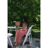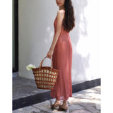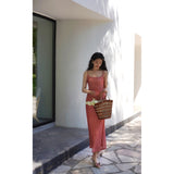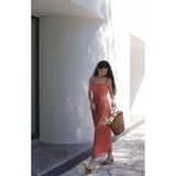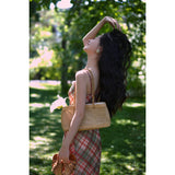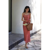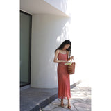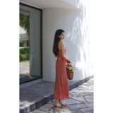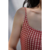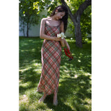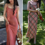 エレガントでロマンティックな雰囲気に演出してくれるロング丈のストラップワンピース。胸が高鳴るレトロで華やかなチェック柄。細身のストラップと、タイトなシルエットが女性らしいスタイルを強調しています。歩くたびに軽やかに揺られるデザイン。