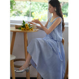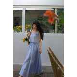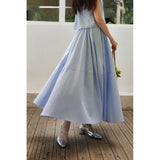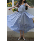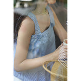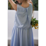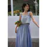 夏のワードローブに欠かせない。カジュアルで爽やかな雰囲気のチェック柄のトップスとアンブレラスカート。トップスは丈感が短く、幅のあるストラップにはボタンが施されており、カジュアルながらも可愛らしい印象を与えてくれる。たっぷりの生地量で仕立てた優雅なボリュームのあるスカートは、エレガントさと上品さを兼ね備えています。