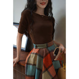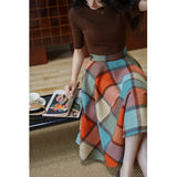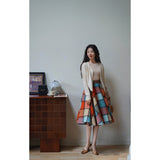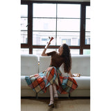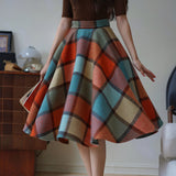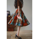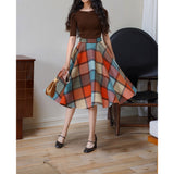 1950年代のレトロな雰囲気たっぷりのタータンチェック柄のアンブレラスカート。目を奪われる鮮やかな色彩。ふわりと膨らむ優雅なシルエットが印象的。シネマティックな世界に誘われてみて。