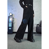 闘魚の刺繍コーデュロイパンツ