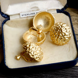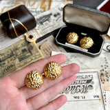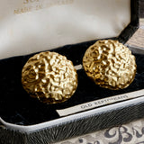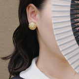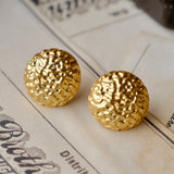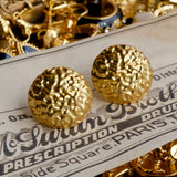 凸凹とした表面がマグマが地表に噴出して固まった溶岩みたい。金色に輝く溶岩みたいな耳飾り。無骨で隆々とした溶岩にエレガンスという魔法をかけて仕上げたアイテム。美しき貴婦人を華麗に彩ってくれる。