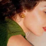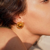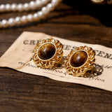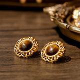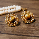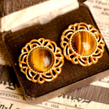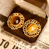 ヴェルサイユ宮殿で開かれる華やかな舞踏会。貴族たちは宝石を散りばめたような艶やかなドレスで着飾り、蝶のように妖艶に舞い踊っている。そんな宮廷舞踏を踊る貴婦人のための耳飾り。虎眼石を中央にあしらった優雅なアイテム。