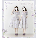 三色菫と薔薇の水彩画クラシカルワンピース(ライトパープル)