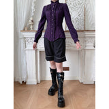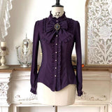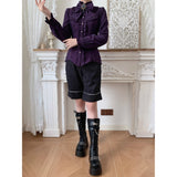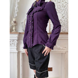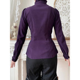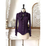 西洋令嬢の縦縞クラシカルブラウス - Purple[2026年1月上旬-1月下旬発送予定]