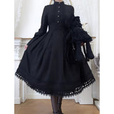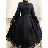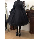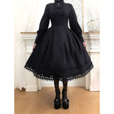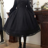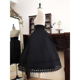 アンティーク感のある重厚な世界観。格調高くドラマティックなスカート。ウエストは高く端正にまとめられており、背面には編み上げが施されています。裾には黒地のレースと幾何学模様のトリムが重なっており、ふわりと広がるスカートはまるで舞台の幕がふわりと開く瞬間のようにドラマティック。