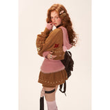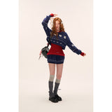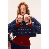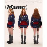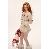 ロマンティックなムードを纏ったニットセータとショートパンツ。ノルディック調の花柄や幾何学模様があしらわれ、どこか懐かしくも愛らしい印象を放ちます。セーターはショート丈でボリュームのある袖が特徴的。ショートパンツは裾のフリルニットがスカートのように揺れ、レイヤードのような立体感を演出しています。温もりと遊び心を兼ね備えた、冬の日常を特別にするガーリーなニットスタイル。