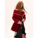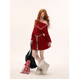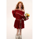上品さと可愛らしさが同居する、ヴィンテージムード漂うモダンガーリーニットワンピース。深みのあるレッドが印象的なケーブル編みのデザイン。チェックのトリムをあしらった大きなオフショルダーの襟元とカフスが、クラシカルな中に遊び心を添えます。ふんわり広がるフレアシルエットがフェミニンでありながら、ニット特有の厚みが冬の温もりを感じさせてくれる。
