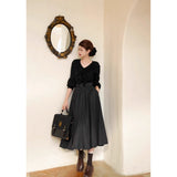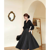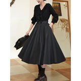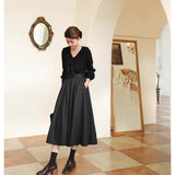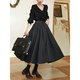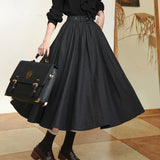 クラシカルな品格と女性らしい優雅さを併せ持つアンブレラスカート。たっぷりと生地を取ったフルサークルシルエットが、歩くたびに美しく波打ち、まるで映画のワンシーンのような雰囲気を演出します。しっかりとしたウール調の生地が季節感を添え、ハイウエストと太めのベルトデザインがスタイルをすっきりと見せてくれます。秋冬の装いに温かみと知的な印象を与える一着。