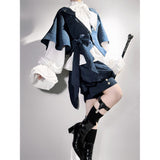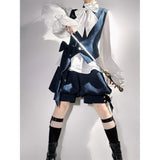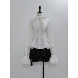 ゆったりとした膨らみのある袖が特徴的なハイネックなブラウス。首元には大きなリボンが装飾されており、ブラウスの縁には優美なレースが刺繍されています。細部のディテールにこだわった存在感のあるアイテム。