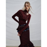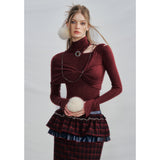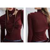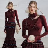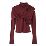 片側の肩を覆うドレープ状のデザインが、斬新で独特なシルエットを生み出しているスリムトップス。体のラインにフィットするカットが洗練された雰囲気を演出。ドレープの下にあるカットアウトデザインがセクシーさをプラスしています。首元を暖かく覆いながらも、全体的なバランスを保つエレガントな仕上がりとなっています。