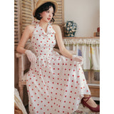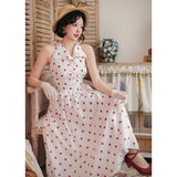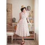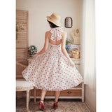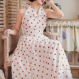 1960年代を想起させるレトロなワンピース。往年の映画女優を彷彿とさせるアイテム。バックオープンとなったデザインで、首の後ろにリボンを装飾できるようになっています。ウエスト部分が絞られており、エレガントな雰囲気に演出してくれる。