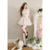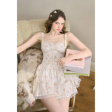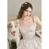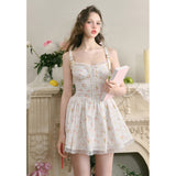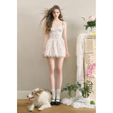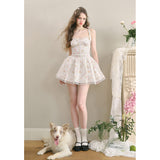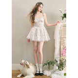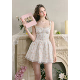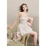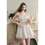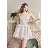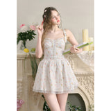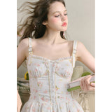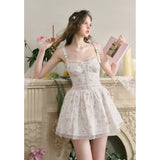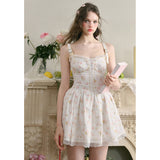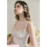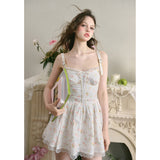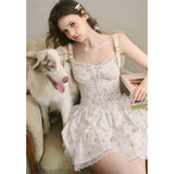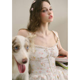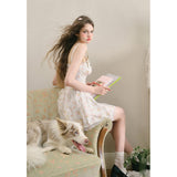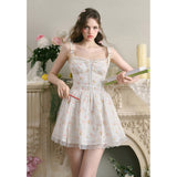 宮廷の庭園に咲く花々を筆致に写し取ったストラップワンピース。ふわりと広がるスカート部分にはレース刺繍が装飾されています。心動かされるロマンティックなときめき。詩的でロマンティックな夢世界に誘われてみて。