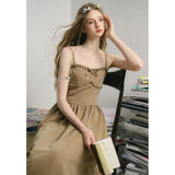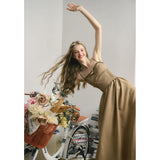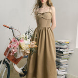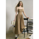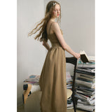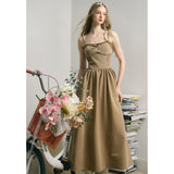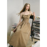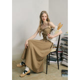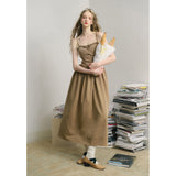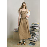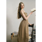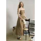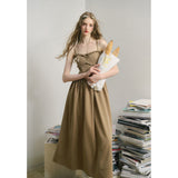 洗練された美学を象徴するシルエット。ブリティッシュレトロな雰囲気が漂うロング丈のストラップワンピース。ウエストを絞って、膨らみのあるスカート部分との相反するバランスがエレガントな印象を与えてくれる。日常に落とし込んだプリンセススタイル。