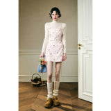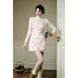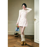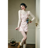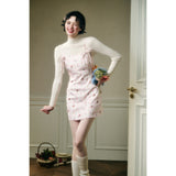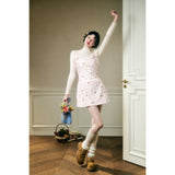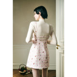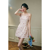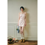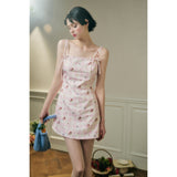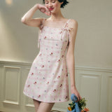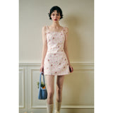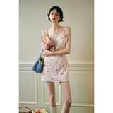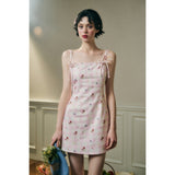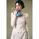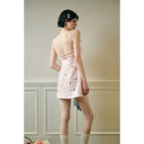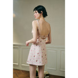 フェミニニティ溢れるピンクのギンガムチェック柄に、色とりどりの可憐な花束を描いたキャミソールワンピース。バックを大胆に魅せたデザインで、肩紐部分にはリボンが結ばれており、繊細でガーリーな印象を引き立てています。