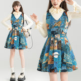 孤高の西洋画家が描いた名画を組み合わせたジャンパースカート。憧れの名画はいつの時代も心をときめかせてくれる。胸元には取り外し可能な存在感のあるリボンを装飾できます。ウエスト位置が高く綺麗なシルエットでお召しいただけます。目を奪われるような大胆な色使いの油彩画を纏ってみて。