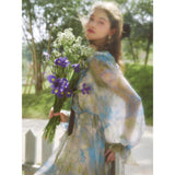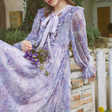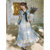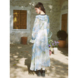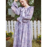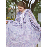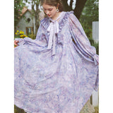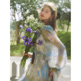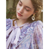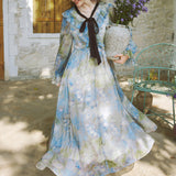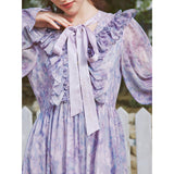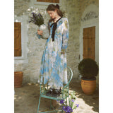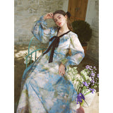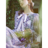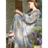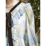 クロード・モネが描いた『睡蓮の池』にオマージュを捧げるワンピース。肩部分から胸元にかけて大胆にフリルが装飾されています。ジヴェルニーのモネの庭の「水の庭」に咲いた睡蓮。やわらかな光に満たされた美しき風景は幻想的。