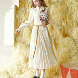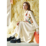 ゴッホが描いた『バラとアネモネのある日本の花瓶』とマティスが描いた『デイジーの花』にオマージュを捧げるワンピース。ベストとワンピースを組み合わせたデザインで、ウエストをリボンで結べるようになっており、プリーツのディテールも加わり、動きのあるデザインが魅力的。絵画を纏っているような芸術的なアイテム。
