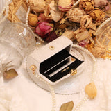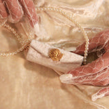 レトロなムードを解き放つベルベットのリップケース。中央には金色の天使モチーフの装飾が施されています。心動かされるロマンティックなときめき。洗練と上品さを宿した優美でクラシカルなアイテム。