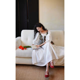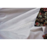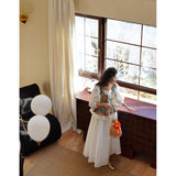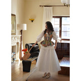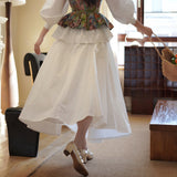 光を纏い、優雅に時を刻むロング丈のフレアスカート。たっぷりと広がるフレアなシルエットが、歩くたびに優雅なリズムを刻みます。施されたレース刺繍が時を超えて囁くロマンスと優雅さを奏でます。エドワード時代の優雅な舞踏会の貴婦人みたいに。