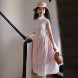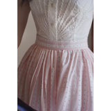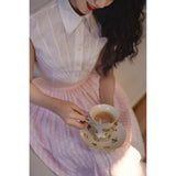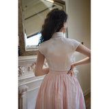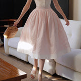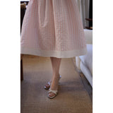 1950年代の映画のワンシーンのような存在感を放つクラシックなスカート。ストライプの間に不規則な立体感のあるフロッキードットが散りばめられています。高めのウエストラインから広がる優雅なシルエット。動きに合わせて、ふわりと揺れるたび、軽やかさと上品さを演出してくれる。