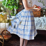 クラシカルで愛らしいレトロな雰囲気のチェック柄スカート。清楚で爽やか、そして知的。でもどこか少女らしい雰囲気が漂います。大きく広がるフレアなシルエットは、動くたびに美しく揺れ、まるで映画のワンシーンみたいに演出してくれる。