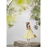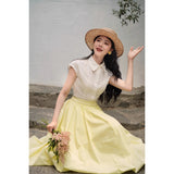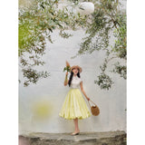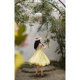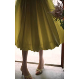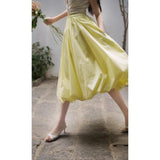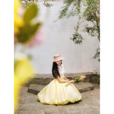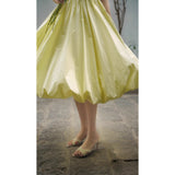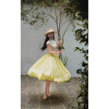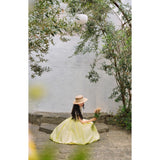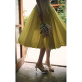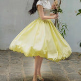 自由に咲き誇る花のような、エレガンスと可愛らしさを完璧に両立したスカート。膨らみのあるボリュームに目を奪われる。美しさを象徴する構築的なデザイン。スカート部分にはたっぷりの生地を使用し、椅子に座れば、ふんわりとした花束のように、立ち上がれば雲のように軽やかに揺れるシルエットが完成します。
