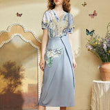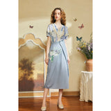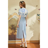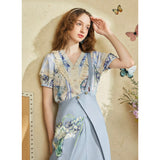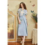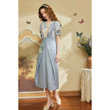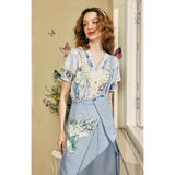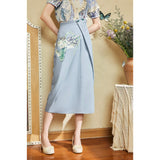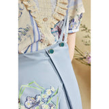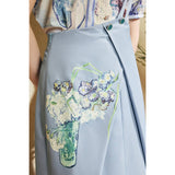 ゴッホの『静物:アイリスのある花瓶』を描いたストラップスカート。綺麗な折り目となるようにフロントで折り畳んだようなデザイン。控えめながらも、独創的な個性を放ってくれる。絵画を着飾っているような感覚になる芸術的なアイテム。