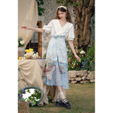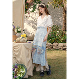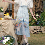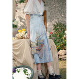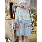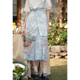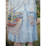 ゴッホが描いた『サントマリーの浜辺の釣り舟』にオマージュを捧げるストラップスカート。鮮やかなペンキを塗った釣り船と、爽やかな風が吹き抜ける地中海の海と空。レイヤードデザインが特徴的で、アシンメトリーなオーバースカートが動きのあるシルエットを演出します。